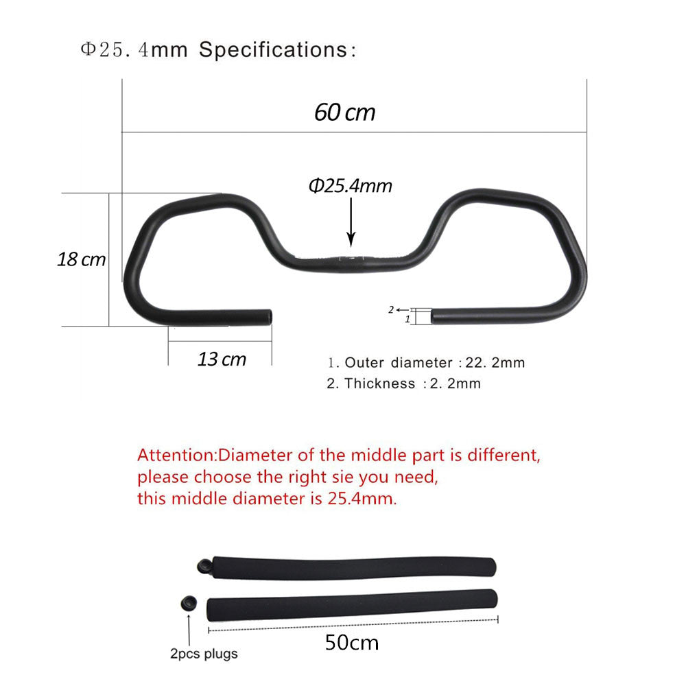 • Come with one pair of handlebar sponge cover,the sponge length: 500mm,thickness:8mm.Also come with grip bar end plugs(plastic).